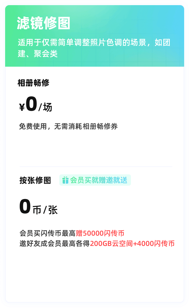 按张修图不限相册不限类型,会员低至 ¥0.06/张